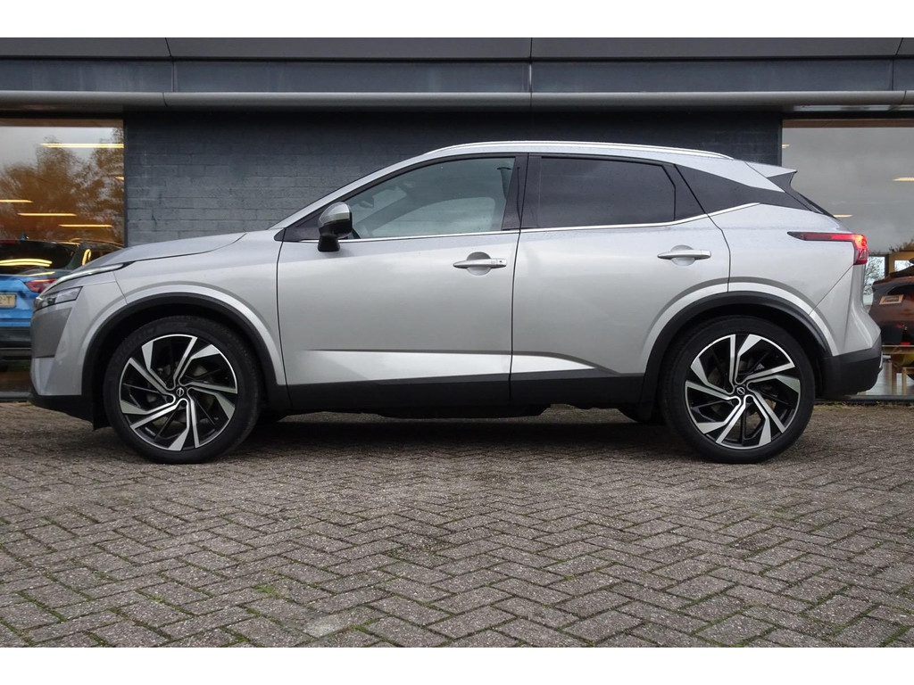 Zeer mooi en rijk uitgerust: deze Qashqai 1.3 Mild Hybrid in Tekna Plus-uitvoering combineert de soepele Xtronic automaat met de zuinige 1.3 Mild Hybrid (158 pk). Binnenin verwent hij met een volledig (Nappa) lederen interieur, comfortabele stoelen met massage functie.